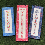 This pattern contains the following: Design files and instructions for the different Bit-O-Color quilted banners, in the following formats:??art, .dst, .exp, .hus, .jef, .pes, .VIP, .vp3. The words have been divided into two or three hoopings, depending on the banner.??An 8" x 12" hoop is required. The straight-line quilting behind the letters in each hooping is part of each design! Easy to follow, step-by-step instructions for embroidery and banner. See pattern back image for fabric and materials list.