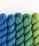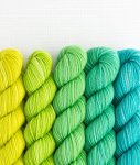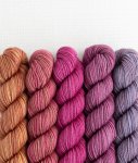 SweetGeorgia "Party of Five" mini-skein sets are an easy way to play with color without the worry of mixing and matching yourself.